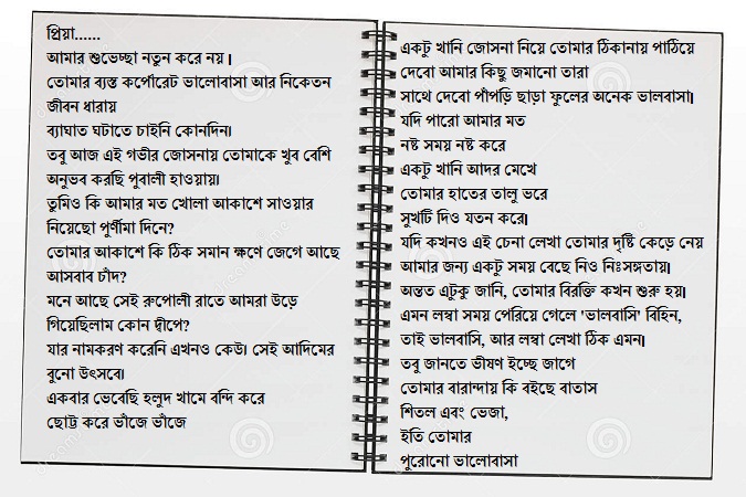 173) "Eid elo bristi elo khushir joar mukto holo, Eider ekhon notun rup,Bristi holo oporup. Tumi amar aponjon tai tomai Eider nimontron" “EID MUBARAK”
